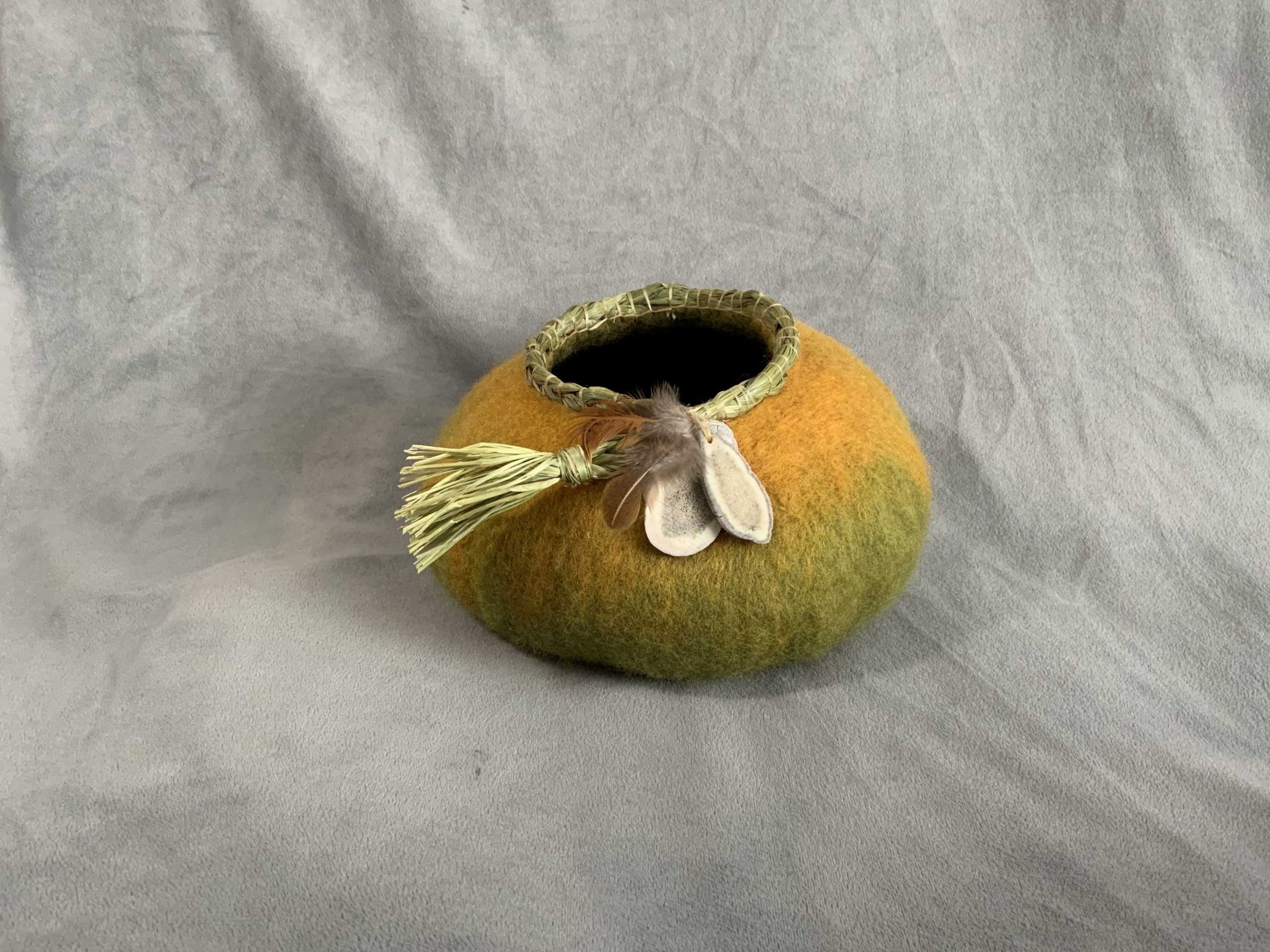 Felted Vessel Rabbit Fur, Caribou Antler – $65