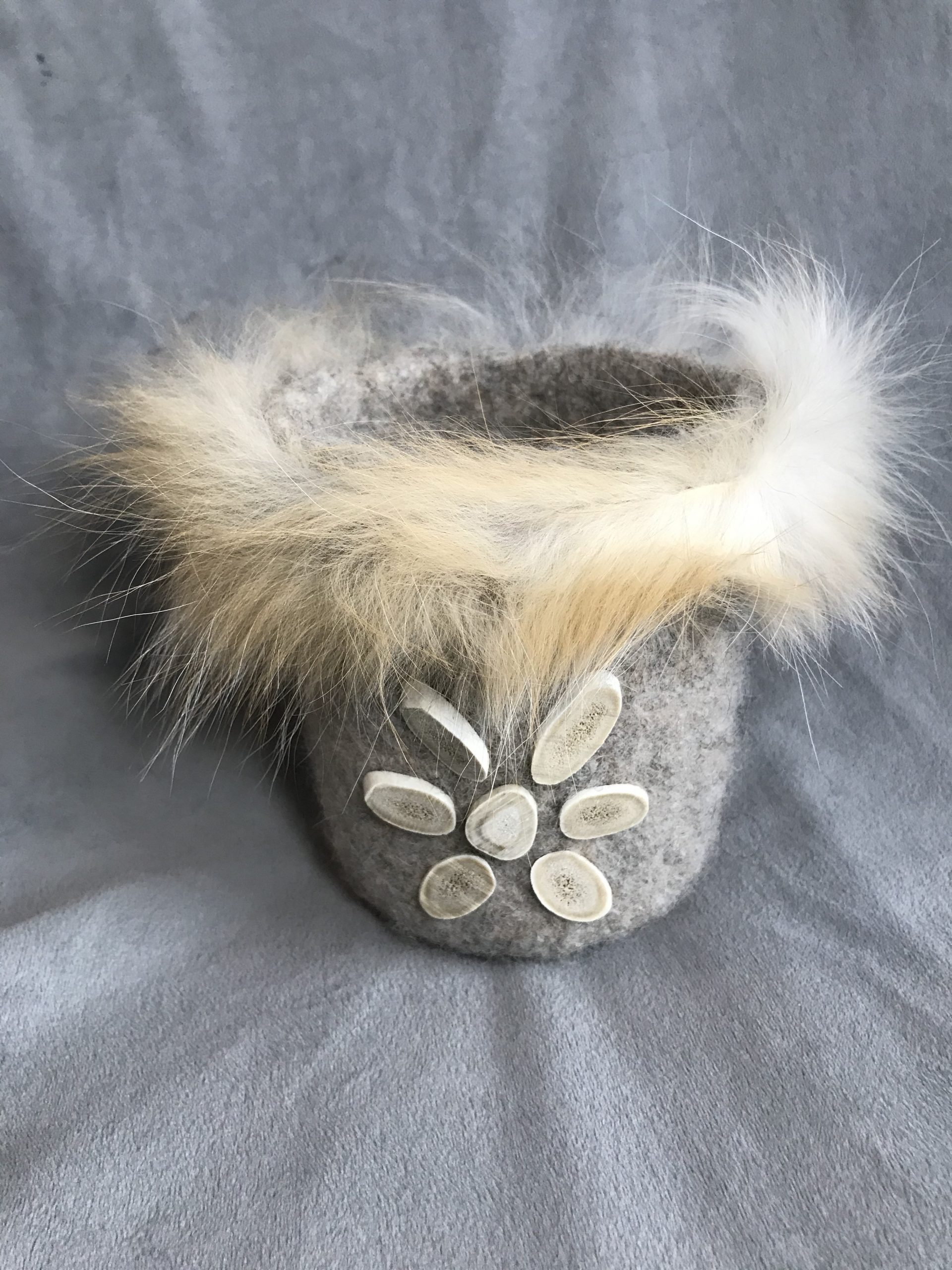 Felted Vessel Caribou Antler, Fox Fur – $110